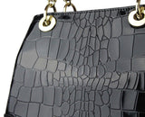 Sensory overload. Ebony, gold, sumptuous tactility. More is more in this rich in personality bag that clashes tradition with the modern and the exotic. The Croco texture accented with gold hardware adds unmissable glamour to any outfit and is a striking feature that does not lend itself to nuances.